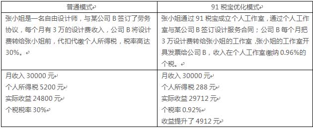 使用91税宝个独型产品主要考虑是个独可以获得国家规定的核定征收方式,从而享受到税收优惠待遇。个独的特殊征收方式,也使得提供劳务过程中所产生的其他费用起到相应地抵冲收入的效果。